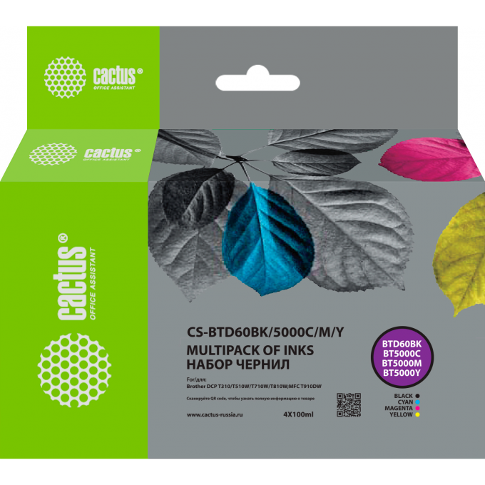 Чернила CACTUS CS-BTD60BK/5000M/C/Y набор 4x100мл, для Brother DCP-T300, T500W, T700W, MFC-T800W CS-BTD60BK-5000M-C-Y