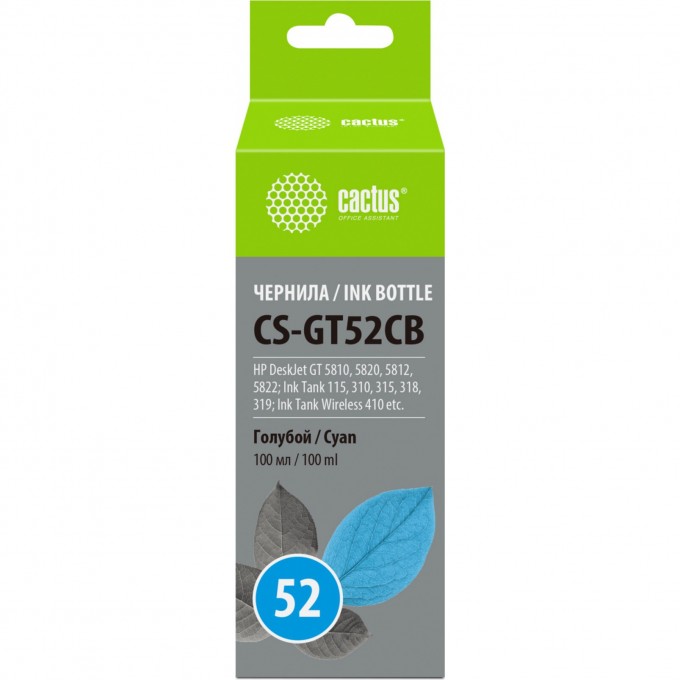 Чернила CACTUS для HP DeskJet GT 5810, 5820, 5812, 5822, голубой, 100 мл CS-GT52CB