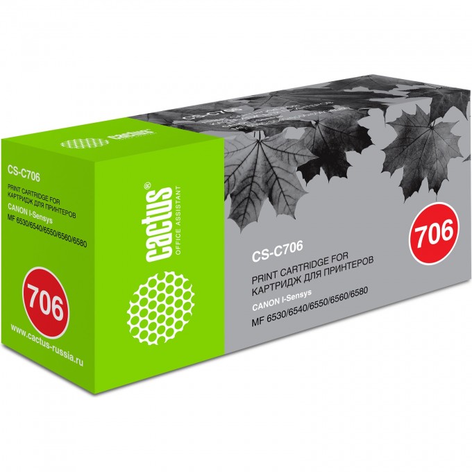 Лазерный картридж CACTUS (Cartridge 706) для Canon imageClass MF6530, MF6540, MF6540pl, MF6550, MF6560, MF6580; MF6530 i-Sensys, 6540 i-Sensys, 6540pl i-Sensys, 6550 i-Sensys, 6560 i-Sensys, 6580 i-Sensys, черный, 5 000 стр. CS-C706
