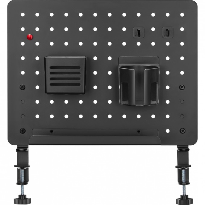 Настольная перфорированная панель черного цвета с набором аксессуаров для организации рабочего пространства на столе