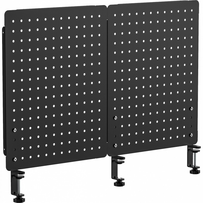Двойная перфорированная панель на струбцине для организации рабочего пространства на столе, цвет черный + черный