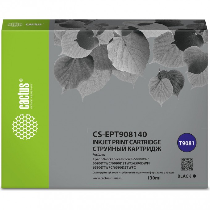 Струйный картридж CACTUS (T9081) для Epson WorkForce WF-6090DW, WF-6590DWF Pro, черный, 130 мл CS-EPT908140
